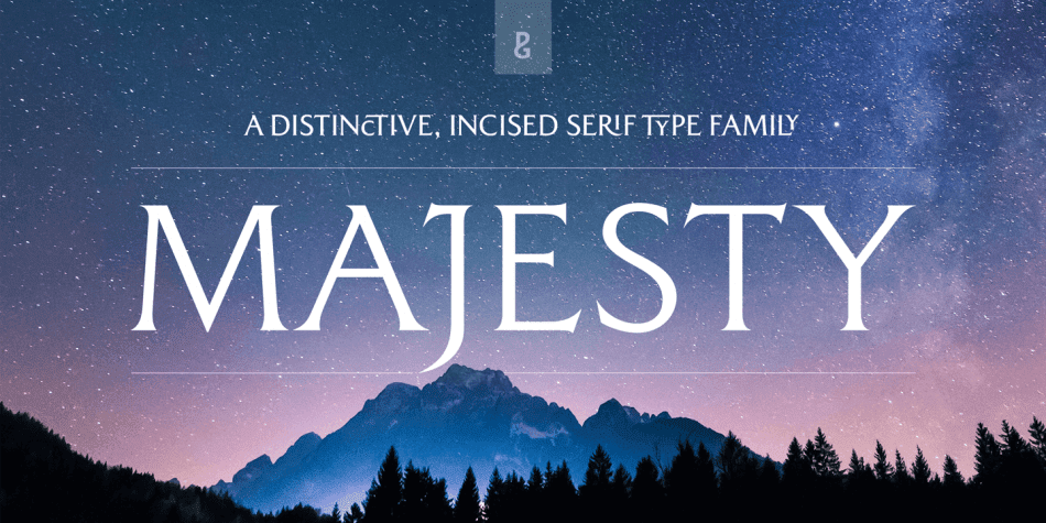 Majesty is a refined and elegant incised serif typeface designed to convey a sense of drama with any implementation of it.